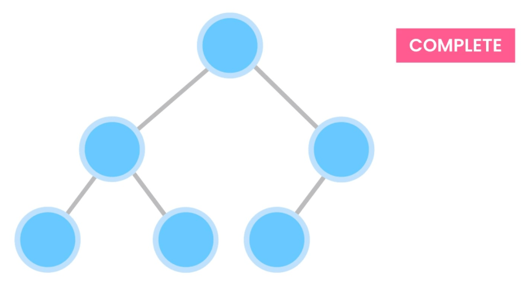 - Complete tree: each level except the last level is completely filled, and the last level is filled from left to the right.