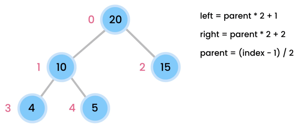 - Insert(): add to the end in the array, compare with its parent value, if it’s larger, bubble up until the right position O(log(n))