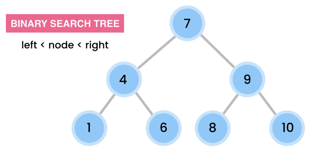 - in-order: left, root, right [1, 4, 6, 7, 8, 9, 10 ] -> result is in ascending order
