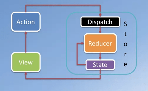 - Reducer – pure functions that take the current state and action and return a new state