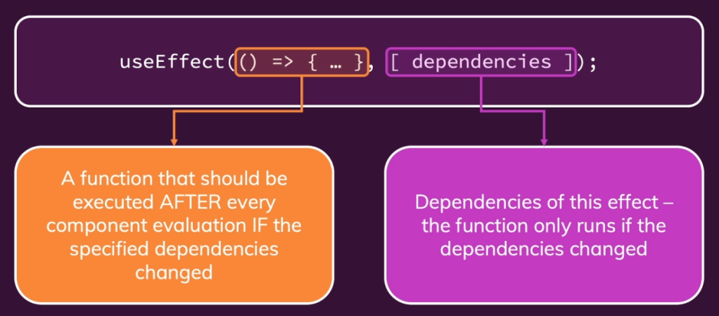 Cleanup function in useEffect() – Run before each side effect function except for the first time