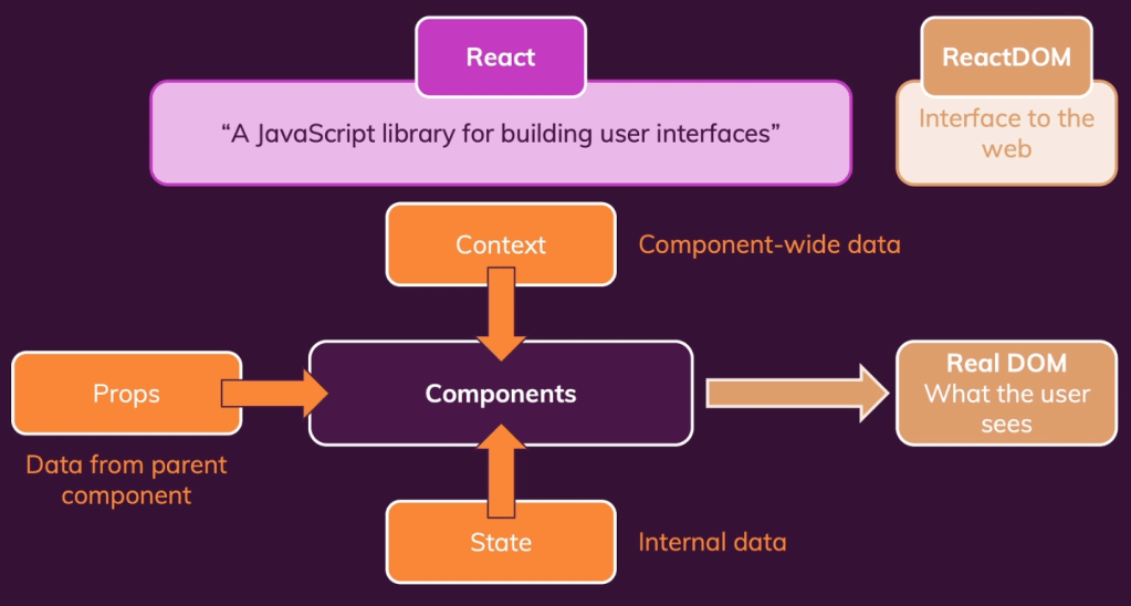 Props for configuration, Context for state management across components (prevent long prop chain)