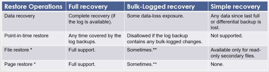 - Recovery model and Backup type?