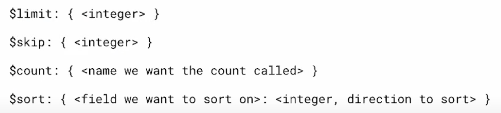 $sum, $avg, $max, $min, $stdDevPop, $stdDevSam