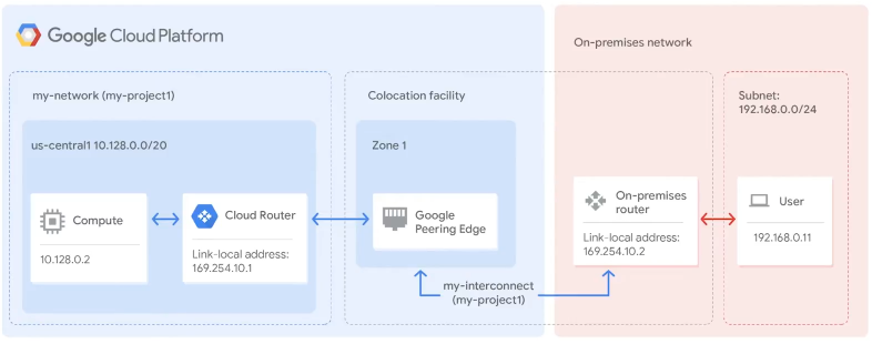 - Requirement: A cross-connect between the google network and router in a common co-location facility to establish a BGP session (The two routers themselves cannot establish BGP session?)